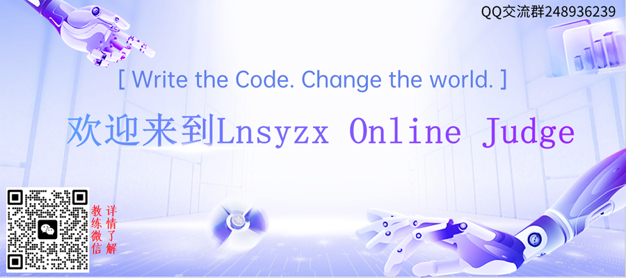 注册一个 Lnsyzx Online Judge 通用账户,您就可以在我们提供的所有在线评测服务上提交代码、参与讨论。